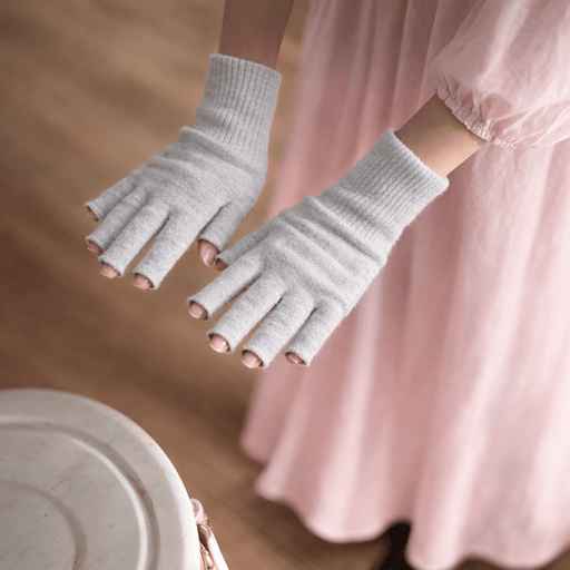 memeri_knitwinカシミヤと同じくらい細やかなウールを使用した、しっとりと温かい指先フリーの手袋です。薄手なのにかさ高く、ふわふわと柔らかな風合い。指先まで生地があるので、手首から指先までしっかり温めてくれます。 寒さの厳しい冬はもちろん、冷え込みの残る春先や季節の変わり目にも心地よく使える絶妙な保温性。重...